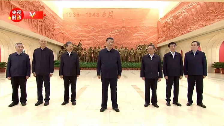 党的二十大闭幕不到一周,中共中央总书记、国家主席、中央军委主席习近平带领中共中央政治局常委李强、赵乐际、王沪宁、蔡奇、丁薛祥、李希,专程从北京前往陕西延安,瞻仰延安革命纪念地,重温革命战争时期党中央在延安的峥嵘岁月,缅怀老一辈革命家的丰功伟绩,宣示新一届中央领导集体赓续红色血脉、传承奋斗精神,在新的赶考之路上向历史和人民交出新的优异答卷的坚定信念。习近平强调,要弘扬伟大建党精神,弘扬延安精神,坚定历史自信,增强历史主动,发扬斗争精神,为实现党的二十大提出的目标任务而团结奋斗。