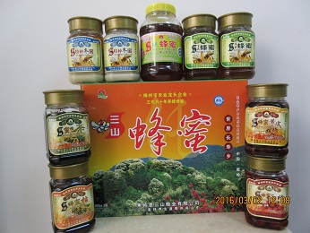 蕉岭县三山蜂业有限公司是一家历史悠久、规模大、声誉高的传统养蜂世家。地处海拔1000多米的三山马头山下,方圆近百平方公里无任何污染,这里崇山峻岭、山高林密、林中野生资源十分丰富、得天独厚、远近闻名、四季花果飘香、八方群蜂飞舞,是个山清水秀百花香的天然养蜂休闲度假胜地,本场蜂蜜采集于深山老林百花精华。目前园内有蜂二千多箱,十多位养蜂专员及属下遍布全县几十个养蜂基地, 1500养蜂户共养蜂三万多箱,年产蜂蜜1000多吨。