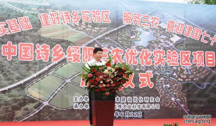 三农优化实验区项目实施建设单位、贵州巨龙缘农业科技有限公司董事长李昌俊在接受授牌后讲话。他表示,在中基会的关心指导下,公司有决心有信心完成好绥阳三农优化实验区建设的伟大使命,为创造绥阳进入更加美好的新时代而努力。李昌俊在讲话中介绍,贵州绥阳(中国诗乡)三农优化实验区规划面积10.6万亩,涉及5个镇,以种养殖、旅游开发为主。核心区为洋川镇东山村、民丰村,占地6000亩。规划项目有高效设施农业、生态酒店、农产品加工物流中心、农产品交易中心、农业研究院、国际会议中心、民族文化商业街、康养社区、康养休闲度假中心等,项目计划总投资125亿元人民币,其中核心区75亿元人民币。