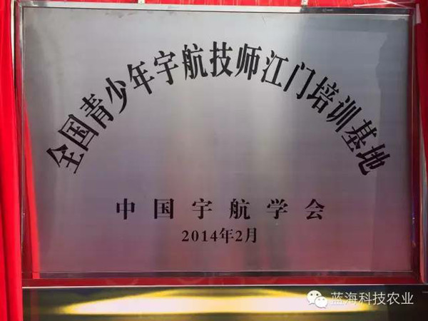本次仪式揭幕的牌匾共有四个,分别是: 广东江门航天育种示范基地”、院士工作站”、 全国青少年宇航技师江门培训基地”、蓝海航天科普院士专家工作站”。